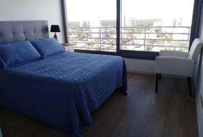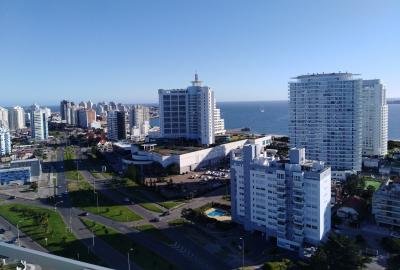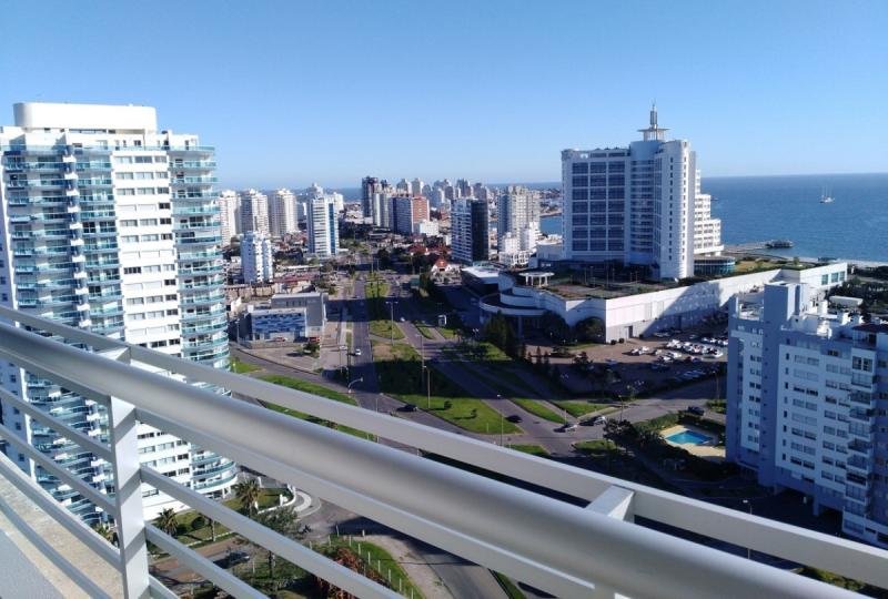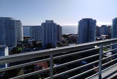 Espléndido apartamento en piso alto. Toilette. Terraza con maravillosa vista panorámica hacia Playa Mansa y Península. Amplio y luminoso living comedor. Vista panorámica a Playa Brava desde la suite. Cocina definida con terraza lavadero completamente equipada. Dispone de aire acondicionado. Doble cerramiento. Excelentes terminaciones. Garaje.