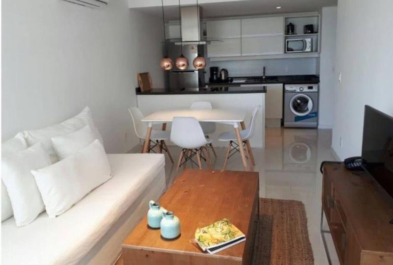 Moderno apartamento de dos dormitorios, principal en suite. 1 baño. Luminoso living comedor con salida a terraza. Cocina integrada completamente equipada. Aire acondicionado en todos los ambientes. Garaje.