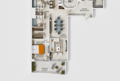 Unidades 03 y 07: 1 dormitorio en suite, toilette, living comedor.