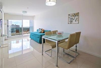 Hermoso apartamento de 1 Dormitorio en suite. Piso alto con terraza y vista al mar. Luminoso living comedor equipado con sofá cama. Cocina integrada con equipamiento moderno. Aire acondicionado. Aberturas en aluminio y cerramiento con doble vidrio. Excelentes terminaciones.