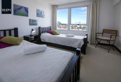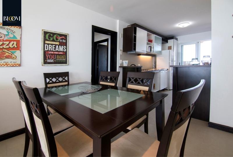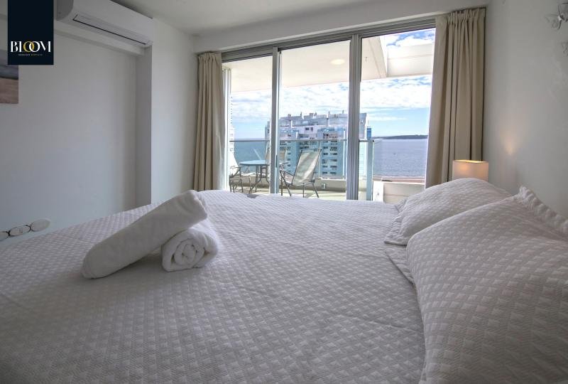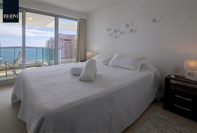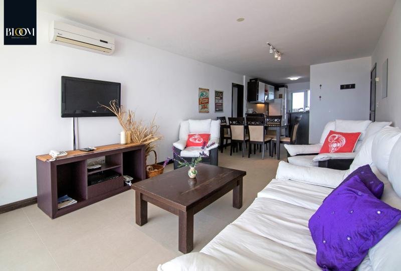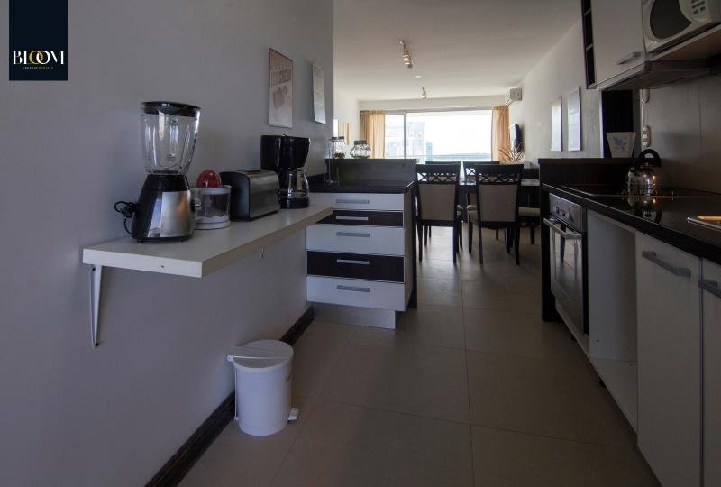 Espléndido apartamento de dos dormitorios, principal en suite. 2 baños. Living comedor confortable con salida a terraza con vista a Playa Mansa. Cocina integrada equipada con línea blanca y salida a terraza lavadero con parrillero privado. Aire acondicionado en living y dormitorio principal. Garaje.