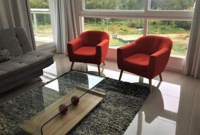 Hermoso apartamento de 60 m2 totales de 1 Dormitorio y 1 baño. Balcón con vista al bosque. Living comedor muy cómodo. 1 cama matrimonial + 1 futón de 1 plaza. Dormitorio con vista al bosque. Tvs en living y dormitorio. Aire acondcionado en dormitorio principal. Cocina definida con línea blanca. Servicio de playa. Servicio de mucamas. Wifi. Garaje.