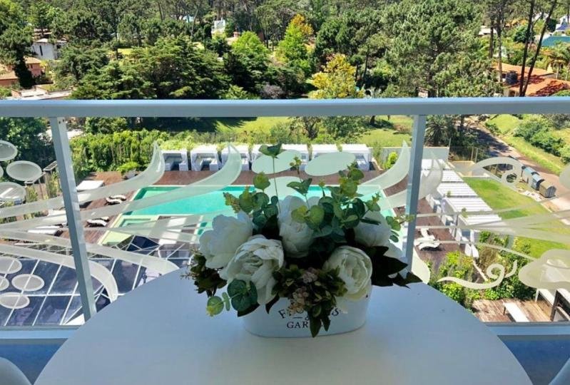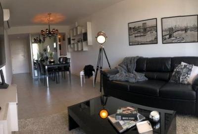 Elegante apartamento de 89 m². 2 dormitorios, principal en suite. 2 baños. Luminoso living comedor con salida a terraza con vista a la piscina. Cocina definida equipada con línea blanca. Aire acondicionado. Losa Radiante En Todos Los Ambientes. Ropa blanca. Garaje.