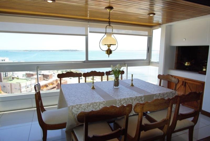 Amplio living comedor con terraza cerrada con parrillero. Vista panorámica al mar. Suite principal con terraza cerrada independiente. Segundo dormitorio cuenta con terraza cubierta.
