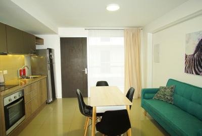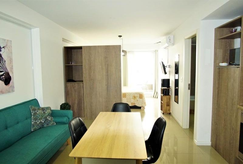 Cómodo apartamento con Dormitorio integrado. Acceso a luminosa terraza. 1 Baño. Luminoso living comedor. Espacios bien distribuidos y amplios placares. Cocina integrada completamente equipada. Aire acondicionado. Decoración alegre. Garaje.