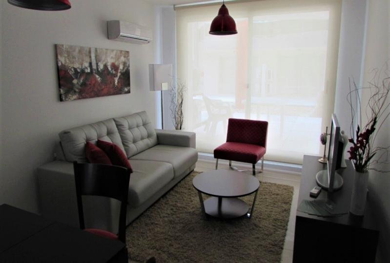 Cómodo apartamento de 1 Dormitorio. 1 baño. Luminoso living comedor con decoración bonita. Agradable terraza. Cocina integrada completamente equipada. Aire acondicionado. Ropa blanca. Cuenta con una cama matrimonial. Garaje.