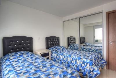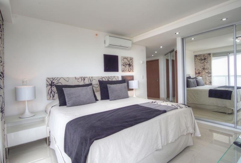 Hermoso apartamento esquinero de 155 m² de 3 dormitorios y dependencia de servicio, una suite, dos baños, toilette. Suite principal con hidromasaje, espléndida vista al mar y salida a la terraza. Gran terraza con parrillero y vista panorámica. Confortable living comedor. Cocina definida con línea blanca y desayunador. Cuenta con losa radiante eléctrica individual en cada ambiente y cerramiento con doble vidrio hermético (D.V.H). Aire condicionado en dormitorios y living. Tvs en suite y living comedor. Servicio de mucamas. Wifi. Cable. Garaje