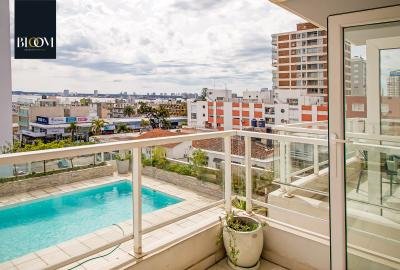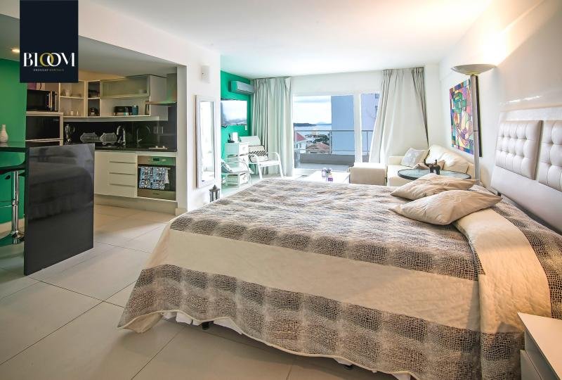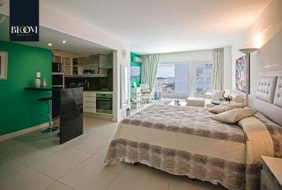 Confortable monoambiente de 45 m² totales. Terraza con vista panorámica a Playa Mansa. Luminoso living comedor. Cocina integrada completamente equipada. Decoración alegre. Aire acondicionado.