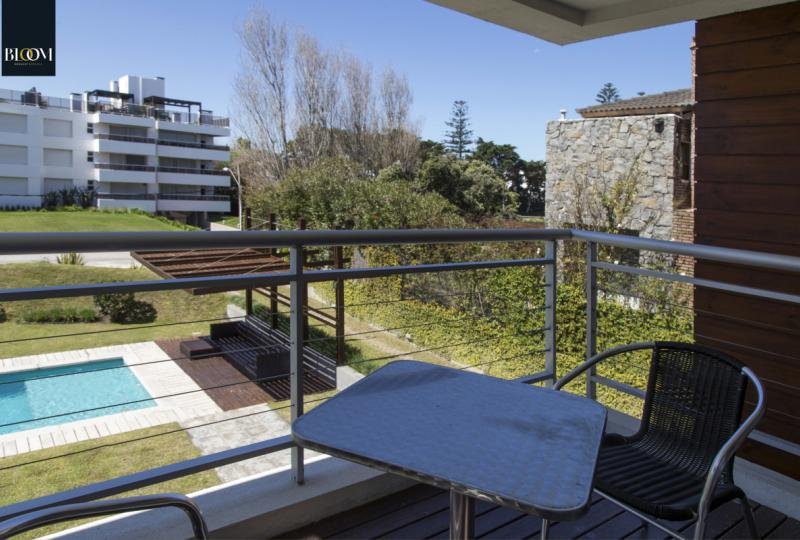 Cómodo apartamento de dos dormitorios, principal en suite. Dos baños, alegre living comedor, cocina integrada completamente equipada. Dos terrazas, una de ellas con vista a la piscina y al jardín y la otra equipada con parrillero. Aire acondicionado en los ambientes principales. Garaje.