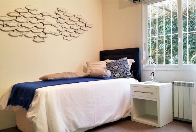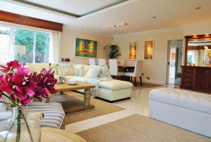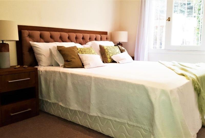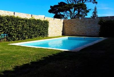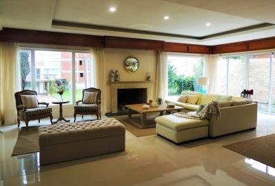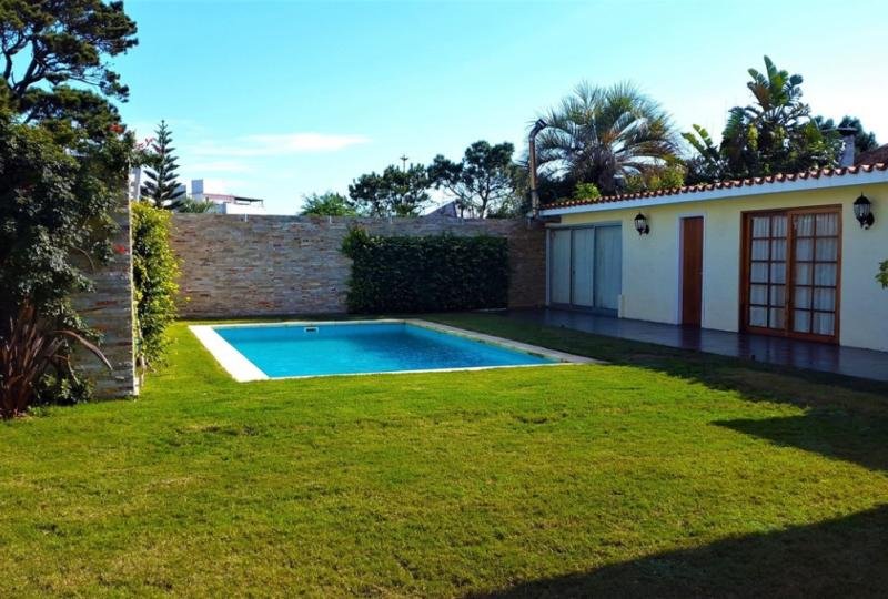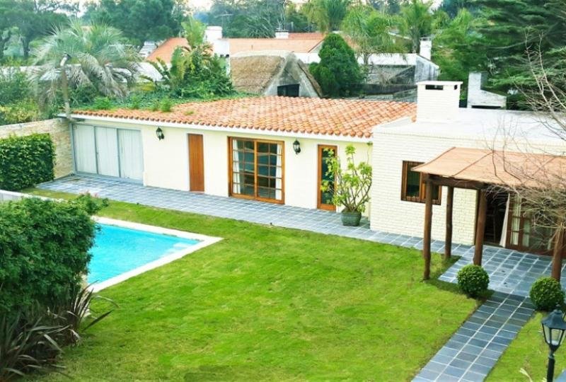 Elegante casa con 436 m² construidos y 1200 m² de terreno. 4 Dormitorios y dependencia de servicio. 4 baños y toilette. Luminoso living comedor con excelente decoración y mobiliario, equipado con estufa a leña. Escritorio privado. Hermosos y amplios jardines con riego automático. Balcón. Piscina climatizada. Amplia cocina definida completamente equipada. Parrillero cerrado. Playroom. Lavadero. Aire acondicionado en todos los ambientes. Garaje con espacio para 2 autos. Alarma.