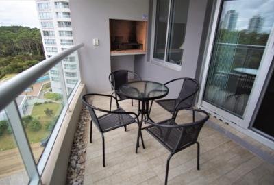 Estupendo apartamento de dos suites más dependencia de servicio, cocina definida y cómodo living comedor. Terraza con vista al mar. Suite principal con hidromasaje, vestidor y salida a la terraza del frente. Segunda suite con salida a terraza con vista al bosque para disfrutar hermosos atardeceres. Cocina equipada con línea blanca y desayunador. Parrillero en la terraza posterior. Toilete. Amueblado. Aire acondicionado, losa radiante sectorizada y cerramientos con doble vidrio hermético (D.V.H). Servicio de mucama opcional. Garaje.