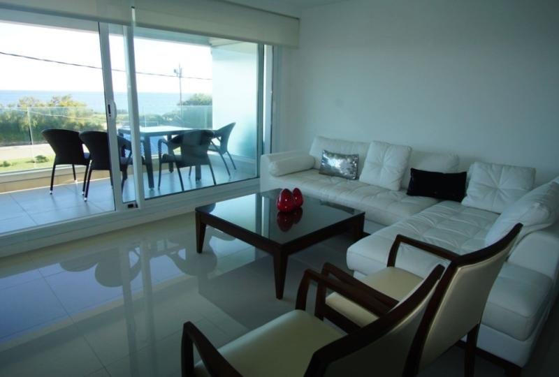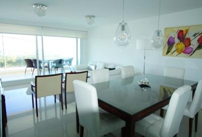 Espléndido apartamento de 118 m². 2 dormitorios en suite y dependencia de servicio. 2 baños y toilette. Confortable living comedor con salida a terraza al frente con hermosa vista al mar. Cocina definida equipada con línea blanca y salida a terraza lavadero. Aire acondicionado en los espacios principales y losa radiante en todos ellos. Excelente mobiliario y muy linda decoración. Finas terminaciones. Garaje. Servicio de mucama (a consultar).