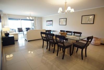 Confortable apartamento reciclado de 3 dormitorios, dos de ellos en suite y dependencia de servicio. 3 baños y toilette. Amplio y confortable living comedor con recibidor y terraza con parrillero con vista al mar. Cocina definida equipada con línea blanca y salida a terraza lavadero.  Ropa blanca. Garaje.