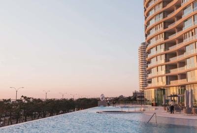 Una concepción de diseño que refleja las suaves ondulaciones de las olas del mar que marcan su ubicación privilegiada de cara a la bahía. El complejo se desarrolla en un área de más de 75.000 m2, terreno elevado frente al mar que incluye dos torres de 27 pisos cada una: The Residences (Torre 1) con cuatro departamentos por planta y The Mansions (Torre 2) que cuenta con dos departamentos por planta.