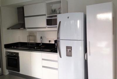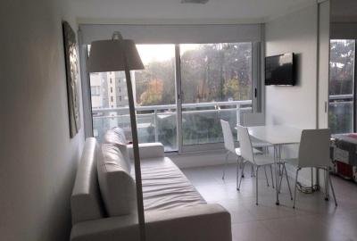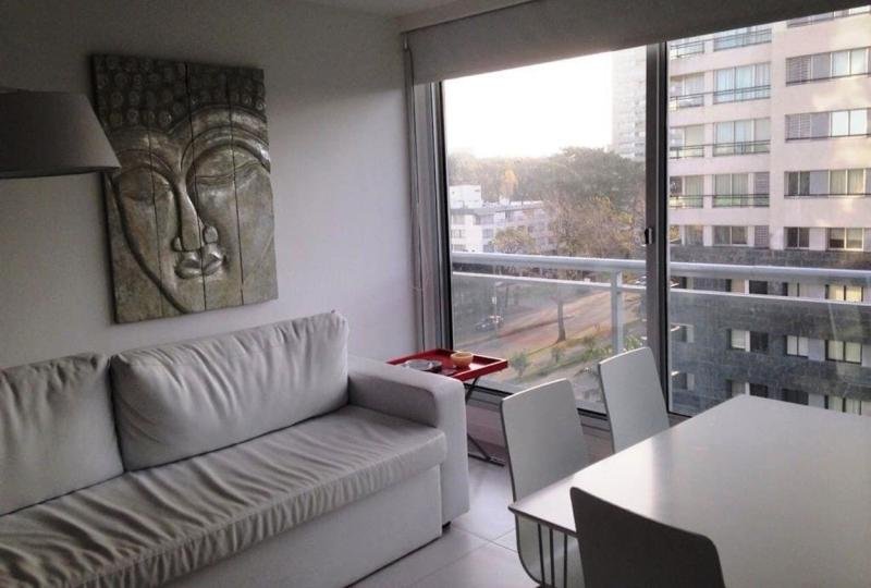 Confortable apartamento Mono ambiente. Luminoso living comedor. Cocina integrada completamente equipada. Aire acondicionado. Cuenta con una cama matrimonial y un sofá cama. Ropa blanca. Garaje.