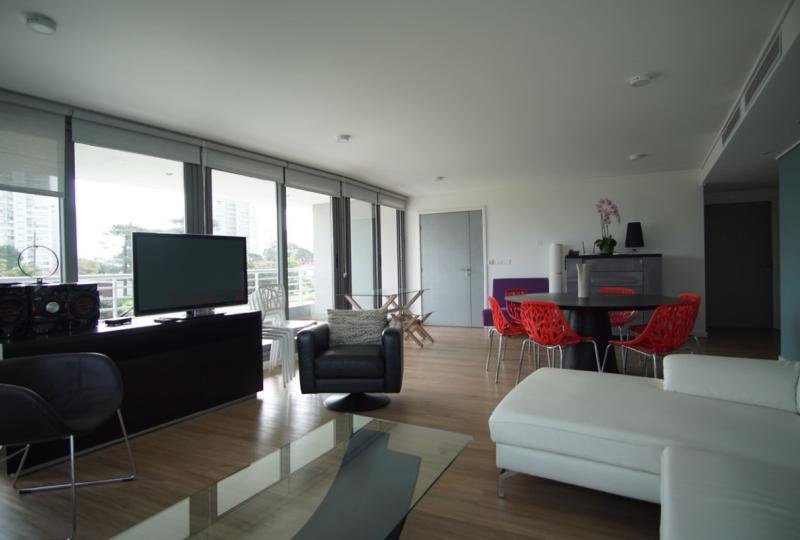 Confortable y amplio living comedor con salida a terraza. Modernos detalles de decoración.