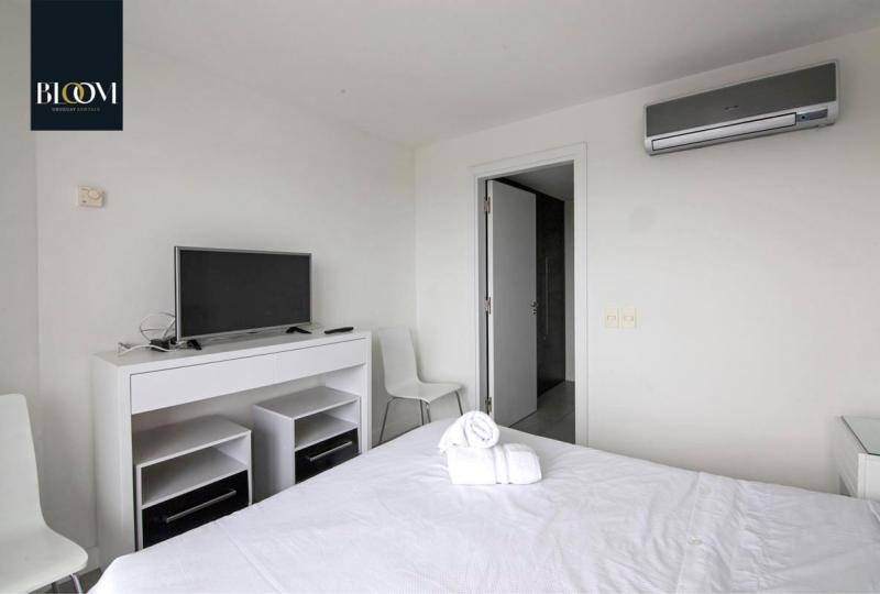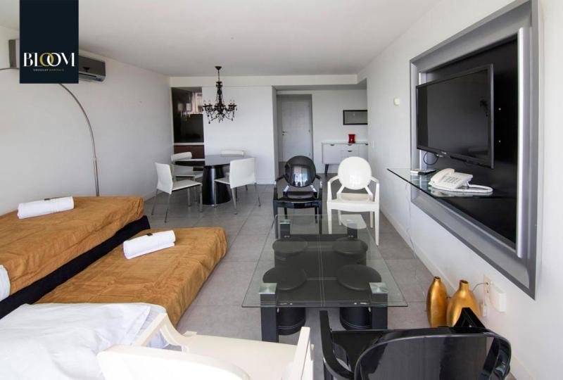 Hermoso apartamento de 73 m² de 1 Dormitorio con espacio para ser utilizado como medio dormitorio. Terraza con vista panorámica a Playa Mansa y a la espléndida Isla Gorriti. Luminoso living comedor con sofá cama y estilosa decoración. Cocina integrada, completa en equipamiento. Aire acondicionado y losa radiante en todos los ambientes.