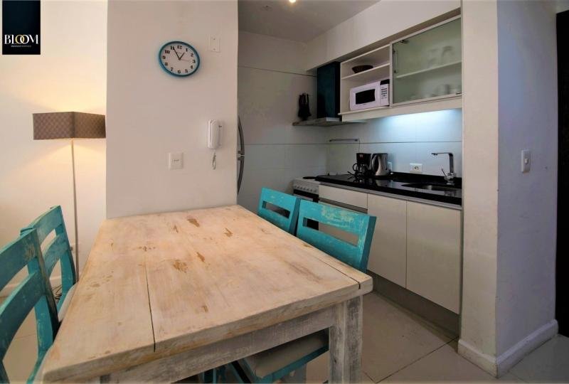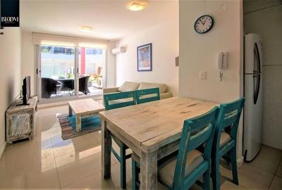 Hermoso apartamento de 1 Dormitorio. 1 baño. Luminoso living comedor con decoración sobria. Patio. Cocina integrada completamente equipada. Aire acondicionado. Cuenta con una cama matrimonial. Ropa blanca. Garaje.