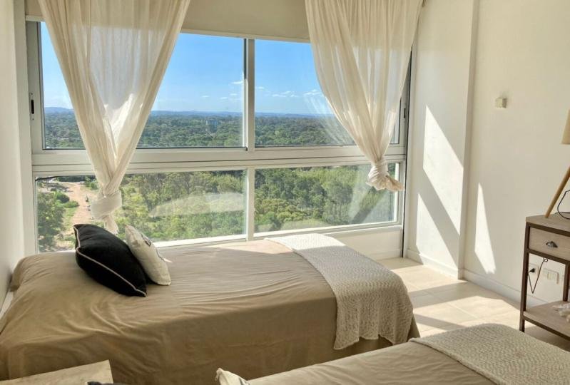 Gran y luminoso living comedor con excepcional vista, parrillero cerrado, amplia terraza, lavadero, cocina totalmente equipada, aire acondicionado en todos los ambientes, losa radiante sectorizada, y garaje doble.