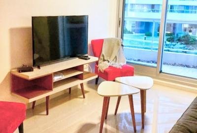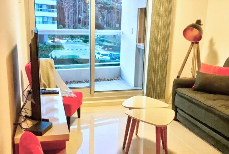 Moderno apartamento de 70 m², 1 dormitorio, toilette, cocina definida, amplia terraza con parrillero propio con vista al bosque, cómodo living comedor. La suite cuenta con hidromasaje en el baño y salida a la terraza. Cocina equipada con línea blanca y desayunador. Losa eléctrica individual en cada ambiente y cerramientos doble vidrio hermético (D.V.H). Garaje.
