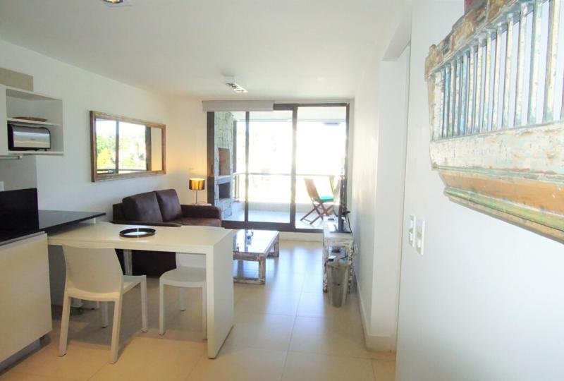 Apartamento moderno y funcional. 1 dormitorio y medio. 1 baño y toilette. Cómodo living comedor con salida a terraza con vista a la piscina y al jardín equipada con parrillero. Cocina integrada equipada con línea blanca. Aire acondicionado en dormitorio principal. Garaje.