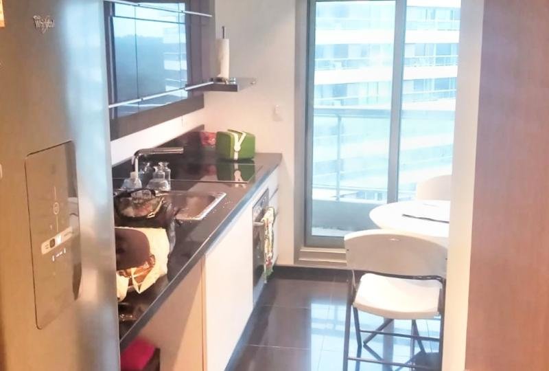 Cocina definida, completamente equipada con línea blanca, cómodo living comedor, terraza con parrillero propio con vista al bosque.