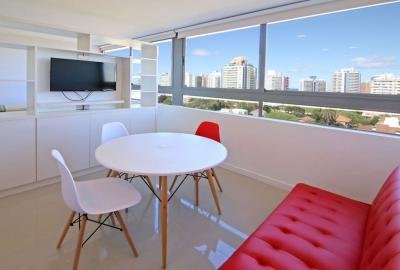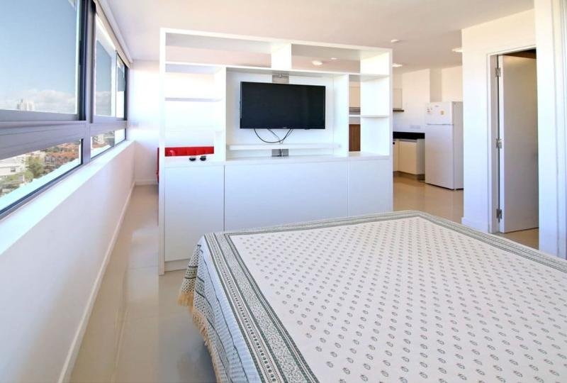 Moderno monoambiente. 1 baño. Cocina integrada equipada con línea blanca. Área de living comedor bien equipada. Aire acondicionado. Cuenta con una cama matrimonial. Ropa blanca. Garaje.